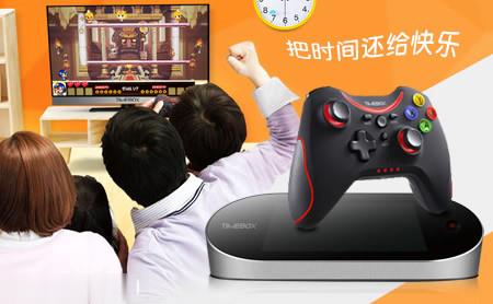 TIMEBOX电视游戏机由上海腾目网络科技有限公司研发,也称时光盒子。它采用顶尖架构及图形处理器,可将多种游戏适配到盒子里,通过高清转换投射到电视屏幕,接通手柄设备即可供多人共同游戏,在电视上实现大屏游戏功能。