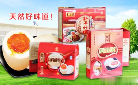 我公司生产的“邮星”蛋品系列选用湖荡中放养的高邮麻鸭所产的鲜蛋为原料,采用传统工艺精心加工而成。双黄蛋红白相间,珠联璧合,实为人间珍品;咸鸭蛋煮熟剥开,蛋白如凝脂白玉,蛋黄似红桔流丹,具有松、沙、油、鲜、嫩、细特点;松花蛋,色如蜜腊,纹似松针,蛋白完整透明,蛋黄呈茶绿色,色、香、味俱全。